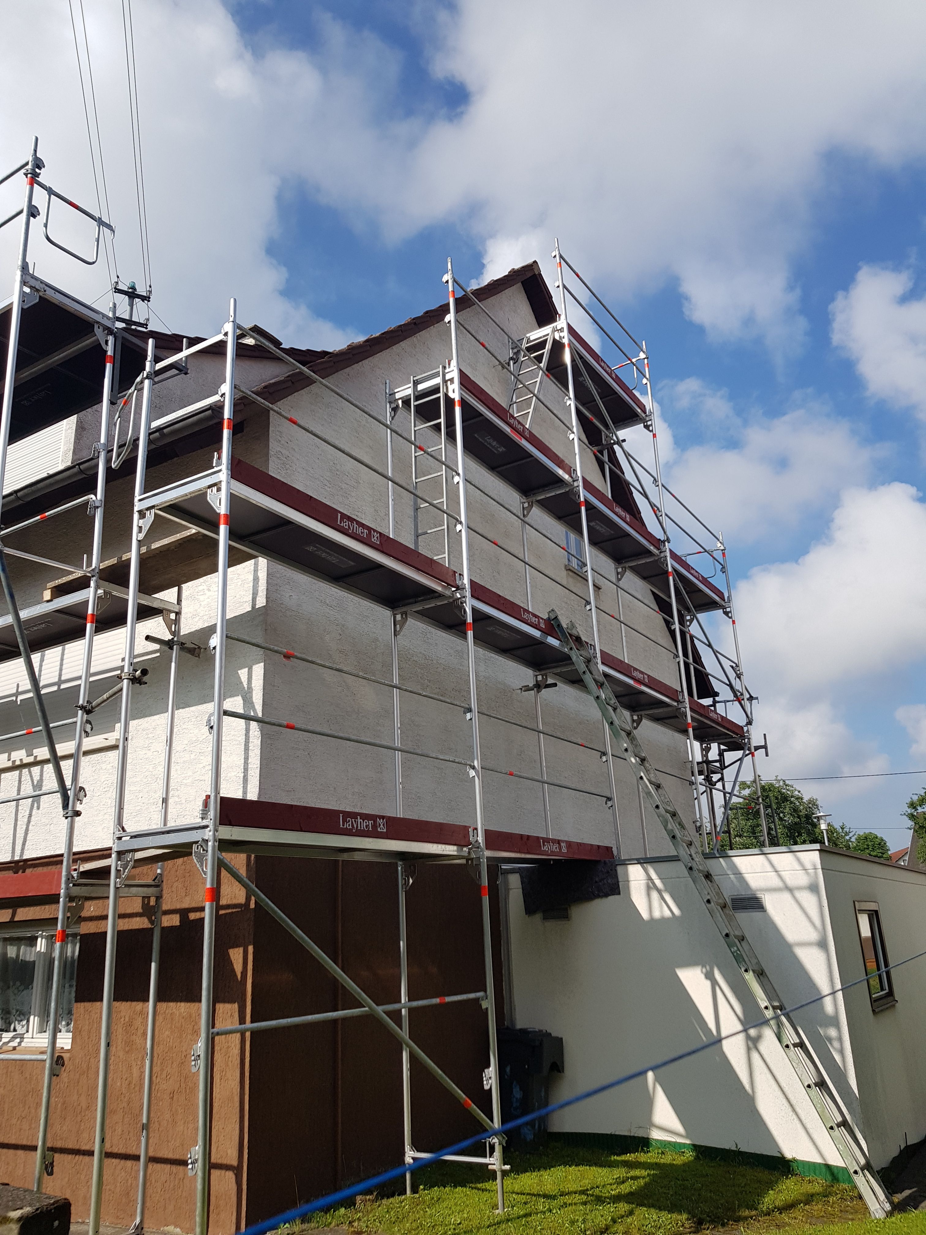 Wir bieten Ihnen die Gestaltung sowie Sanierung von Gebäudefassaden mithilfe aller gängigen Putze. Dabei übernehmen wir für Sie die Entfernung alter Putze und Anstriche sowie den fachgerechten Aufbau der neuen Fassadenbeschichtung. Bei Bedarf nehmen wir zudem die Anbringung von Wärmedämm-Verbundsystemen vor.